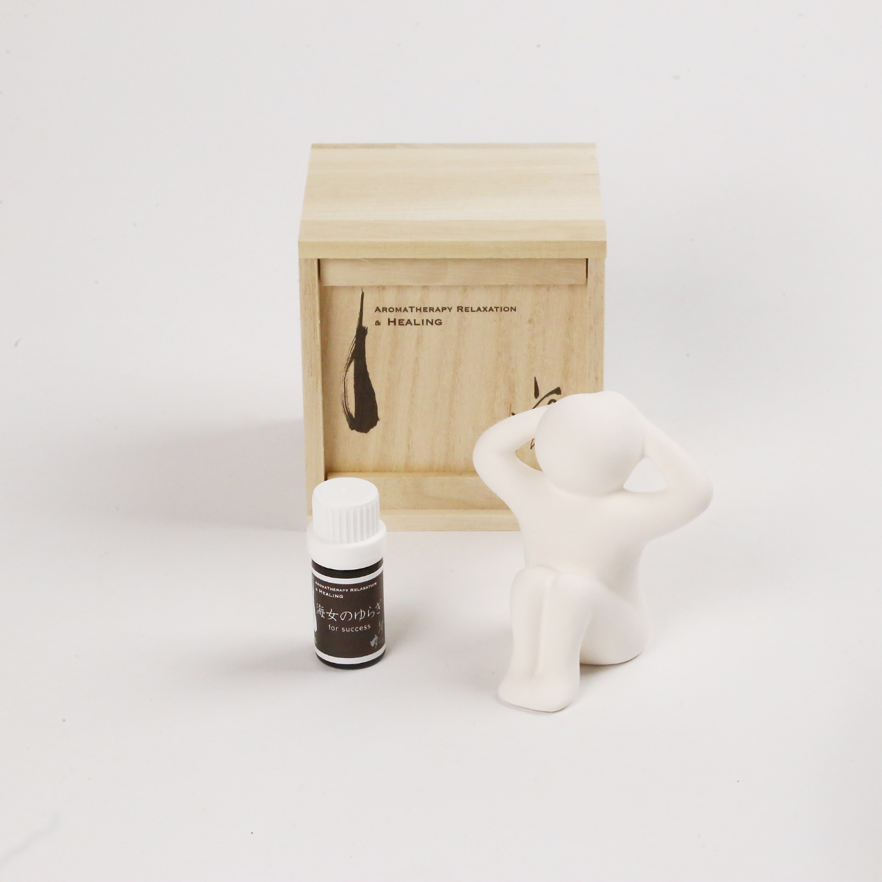 海女のゆらぎは成功をイメージしてブレンドされたユーモア性をデザインをした人型ディフューザーをお供にした、エッセンシャルオイルです。